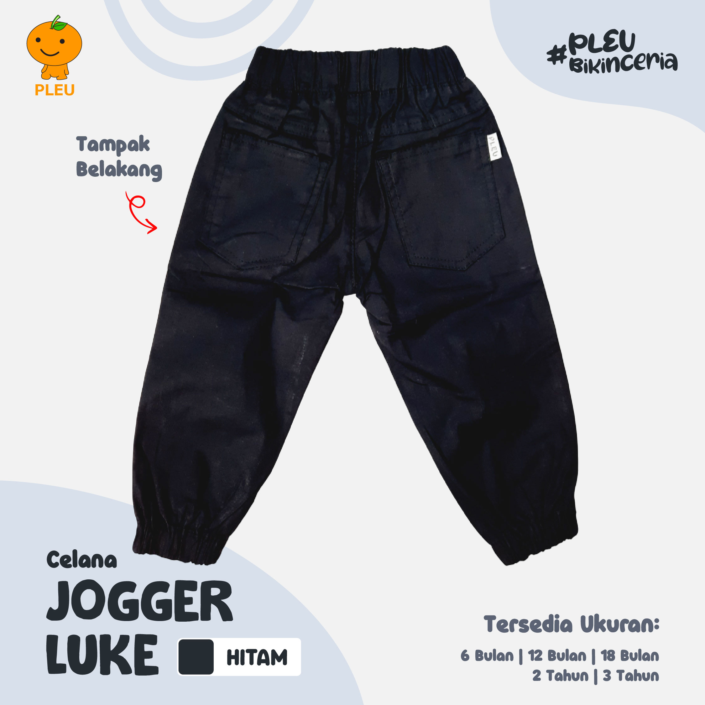 – Ukuran : 6 bulan, 12 bulan, 18 bulan, 2 tahun, dan 3 tahun
