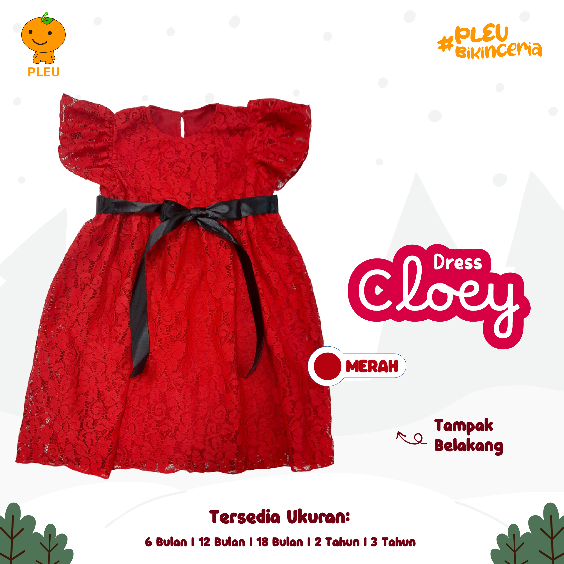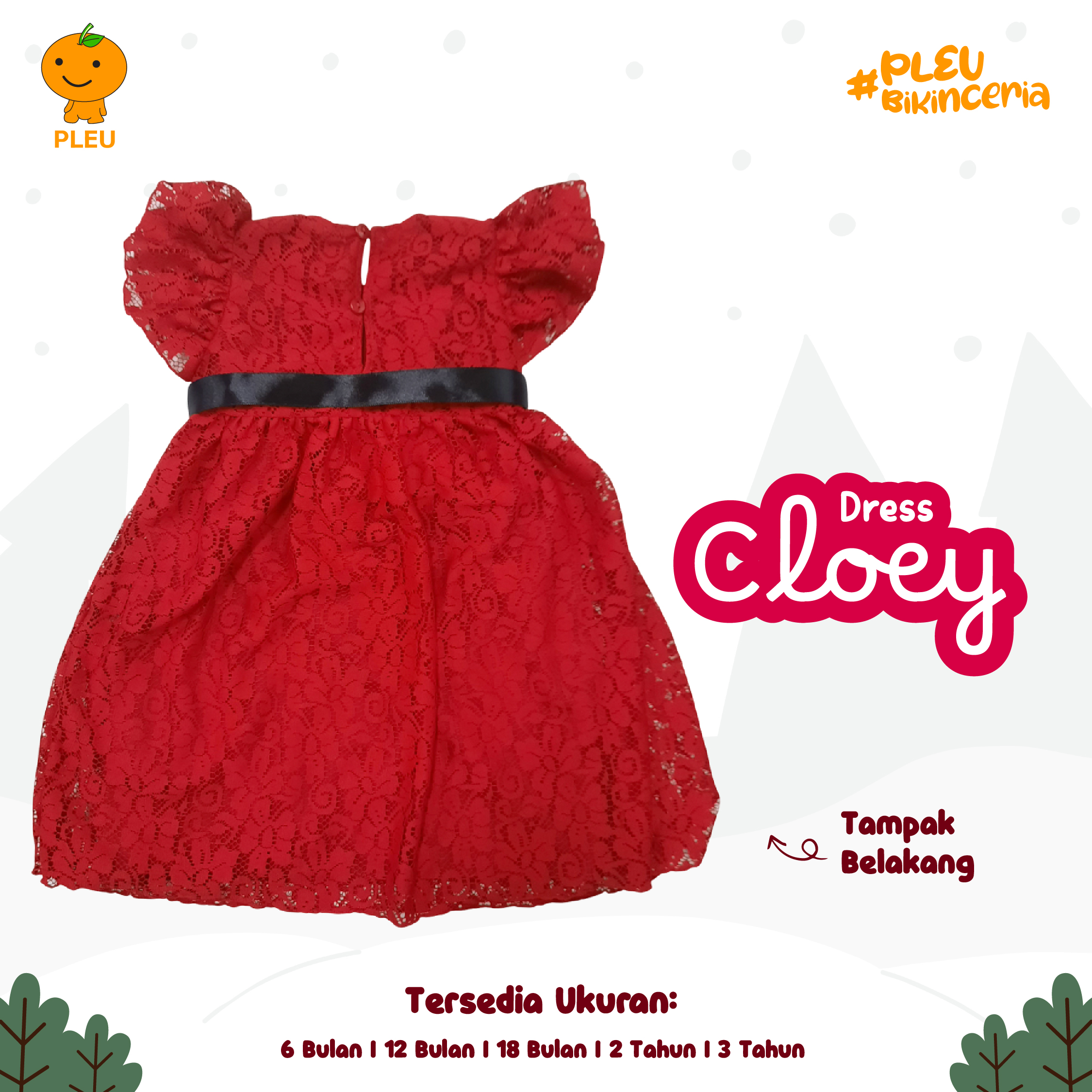 Dress Cloey (6 bulan–3 tahun) tampil memukau dalam paduan merah dan pita hitam yang classy—lapisan outer renda bermotif floral memberi efek tekstur mewah sementara inner lembut menjaga kenyamanan kulit si kecil. Keunikan: lengan puff pendek yang menggemaskan dan potongan A-line memberi ruang gerak bebas, pita hitam di pinggang bisa diikat untuk aksen manis atau dilepas sesuai gaya, serta kancing belakang memudahkan ganti baju; desainnya cocok untuk momen spesial seperti ulang tahun atau foto keluarga. Terbuat dari bahan berkualitas yang breathable, lembut, dan mudah dicuci serta sudah bersertifikat SNI, aman untuk kulit sensitif anak, tidak mudah pudar, dan tetap rapi meski dipakai berulang—pilihan elegan, nyaman, dan aman untuk si kecil.