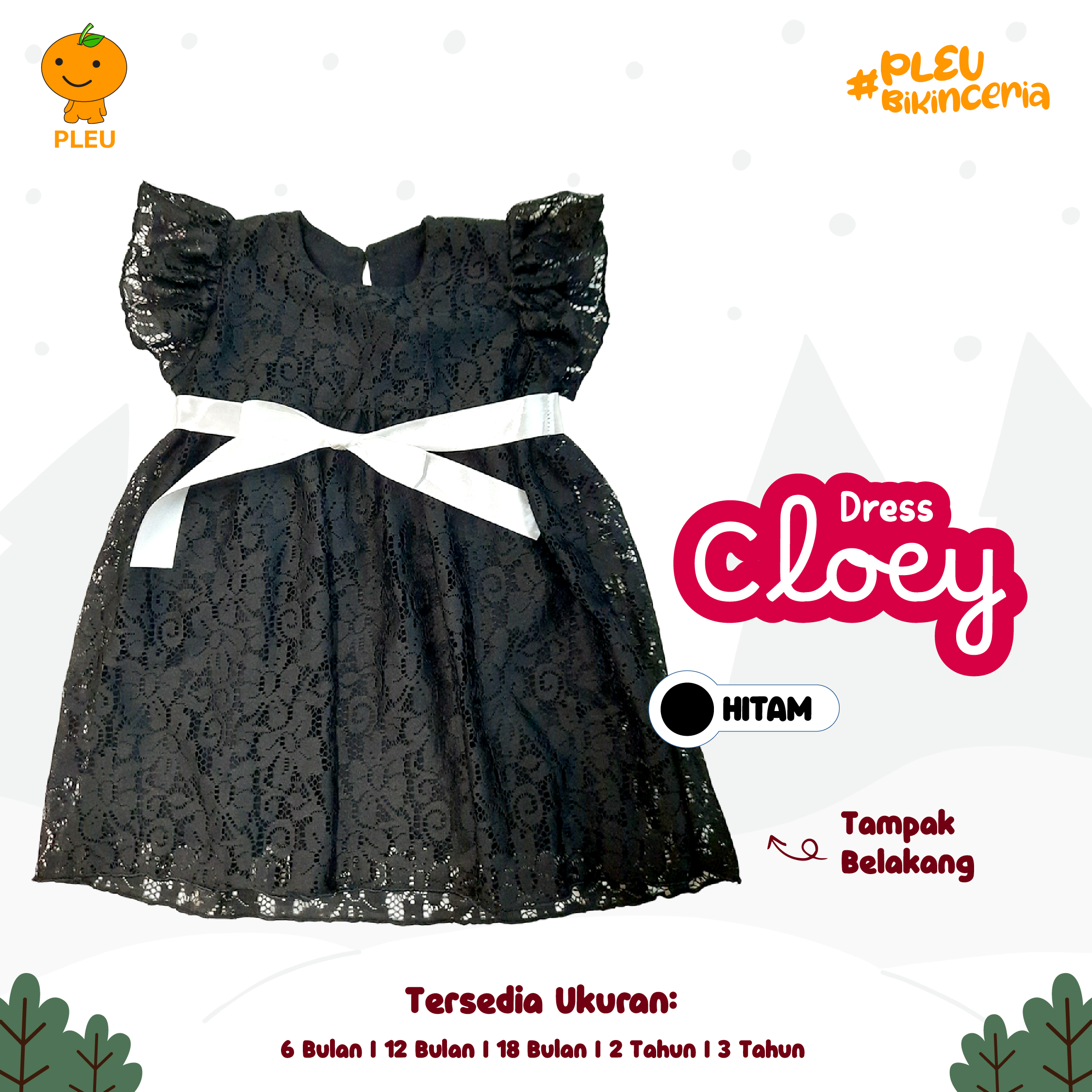 – Ukuran : 6 bulan, 12 bulan, 18 bulan, 2 tahun, dan 3 tahun
