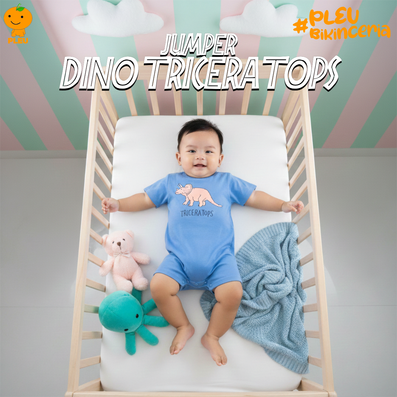 Jumper Dino Triceratops Biru hadir untuk bayi 3 bulan hingga 12 bulan dengan motif dinosaurus lucu Triceratops di bagian dada. Desainnya praktis: bagian bodi one-piece dengan bukaan bodi di bagian bawah untuk ganti popok yang mudah, serta potongan nyaman yang tidak mengganggu gerak aktif si kecil. Keunikan utama adalah cetak grafis dinosaurus yang halus dan tidak cepat pudar, dipadukan warna biru lembut yang netral. Bahan menggunakan katun berkualitas, lembut di kulit bayi, adem, dan mudah dirawat. Semua bahan telah bersertifikat SNI, menjamin keamanan kain, kekuatan jahitan, serta kenyamanan sepanjang hari untuk aktivitas bayi dari bermain hingga beristirahat.