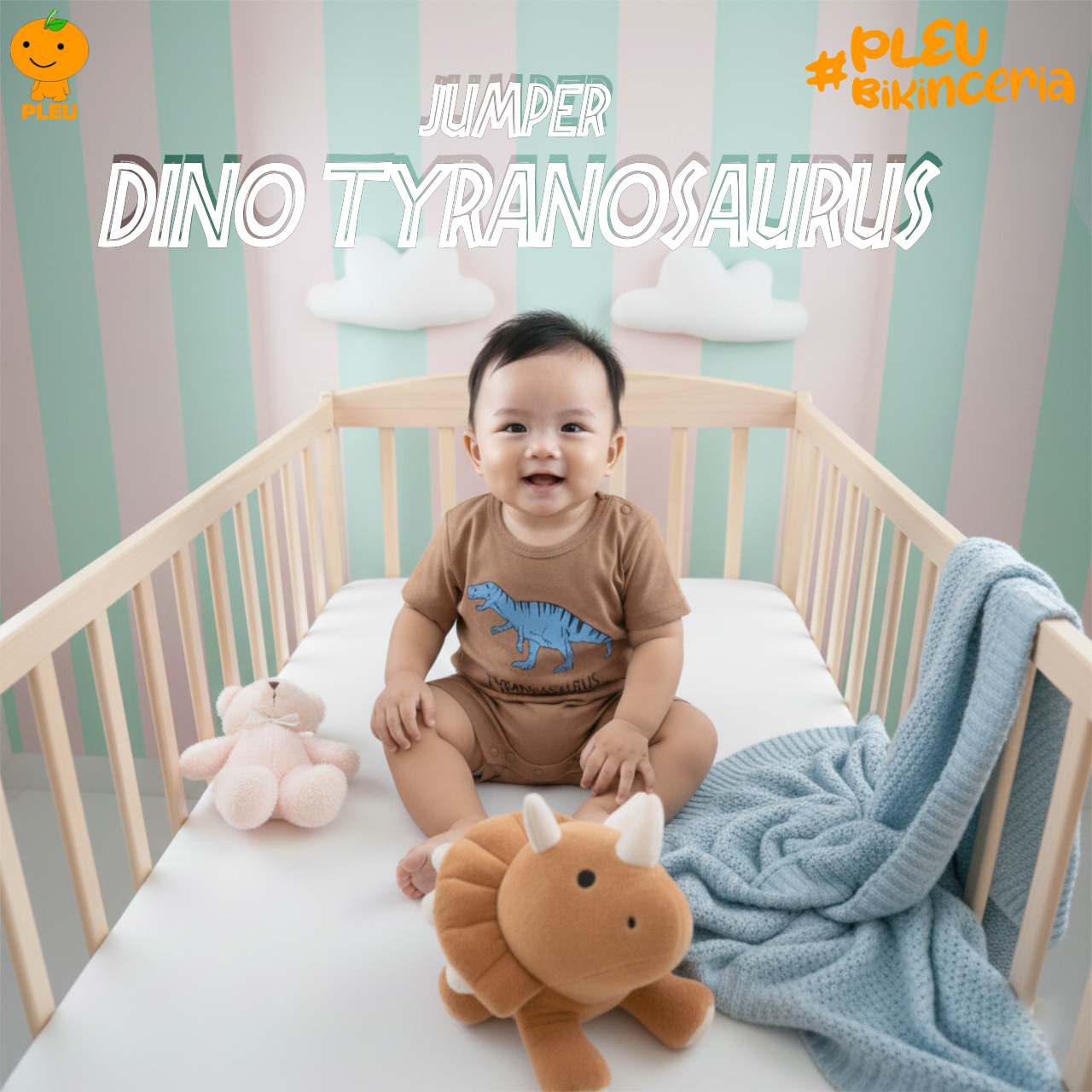 Jumper Dino Tyrannosaurus hadir untuk bayi 3 bulan hingga 12 bulan dengan motif dinosaurus T-Rex berwarna biru di dada. Desainnya praktis dan nyaman: one-piece dengan bukaan bawah untuk ganti popok mudah, serta potongan longgar yang tetap mengikuti gerak aktif si kecil. Keunikan utama adalah cetak grafis dinosaurus yang tajam dan tidak mudah pudar, dipadukan warna khaki netral yang mudah dipadankan dengan item lain. Bahan adalah katun berkualitas yang lembut di kulit bayi, adem, tidak cepat kusam, dan mudah dirawat. Semua material telah bersertifikat SNI, menjamin keamanan kain, kekuatan jahitan, serta kenyamanan sepanjang hari untuk bermain, tidur, dan eksplorasi kecil mereka.