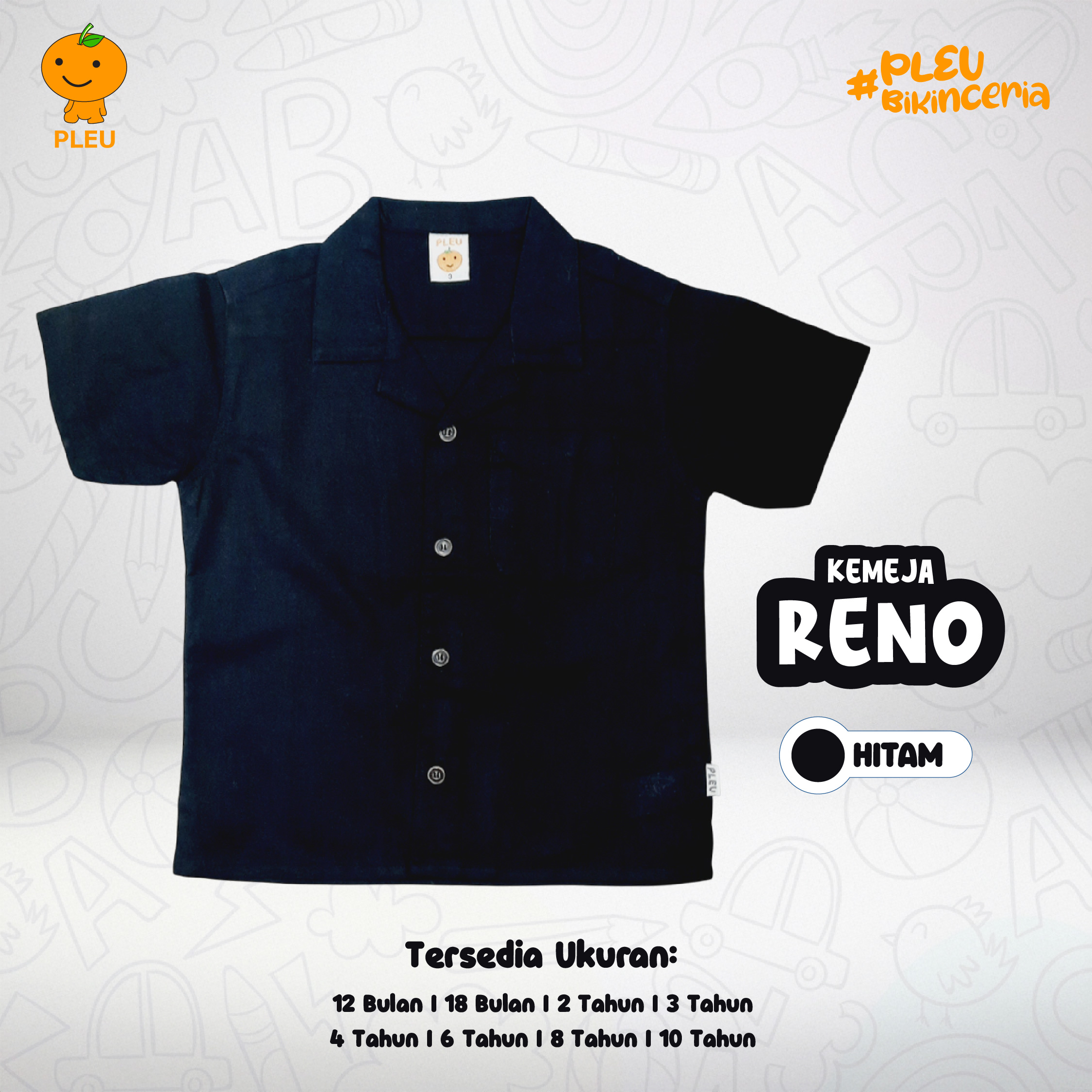– Ukuran : 12 bulan, 18 bulan, 2 tahun, 3 tahun, 4 tahun, 6 tahun, 8 tahun dan 10 tahun