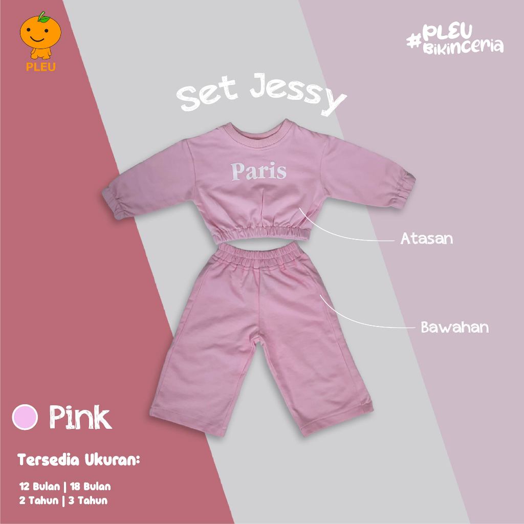 Set Jessy merupakan setelan yang terdiri dari atasan cropped lengan panjang bertuliskan “Paris” dan celana panjang polos yang fleksibel digunakan setiap anak perempuan. Berbahan lembut yang aman dan nyaman untuk kulit Si Kecil, setelan ini akan membuat si kecil terlihat stylish dan mempesona.