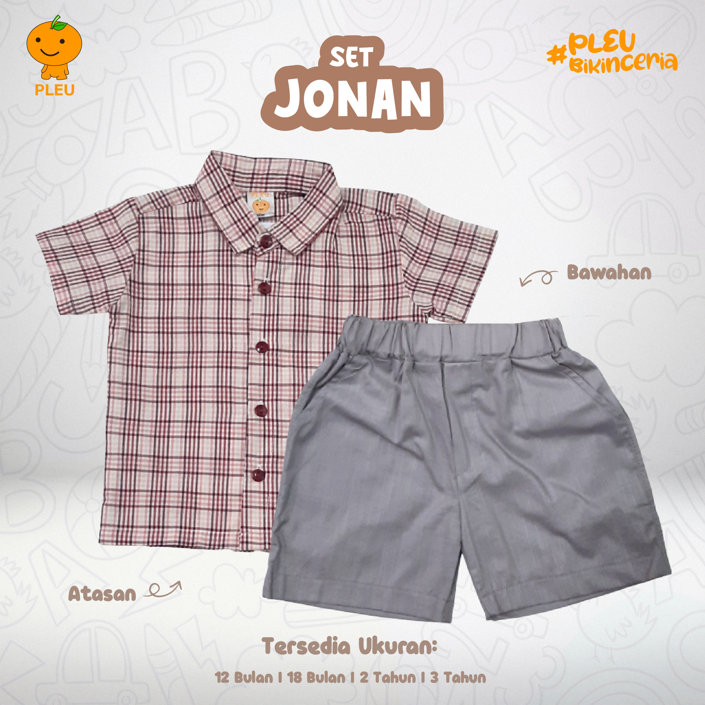 Set Jonan (12 bulan–3 tahun) hadir dalam dua pilihan warna khaki dan merah dengan motif kotak (plaid) yang klasik dan mudah dipadu-padankan—kemeja lengan pendek berkerah plus short polos dengan pinggang karet memberikan tampilan rapi tanpa mengorbankan kenyamanan. Keunikan: kancing depan kemeja memudahkan pakai-buka, pola plaid yang halus memberi nuansa smart-casual, dan short dengan pinggang elastis memberi ruang gerak leluasa untuk aktivitas si kecil; potongan yang tidak ketat tetap terlihat rapi untuk foto keluarga atau playdate. Terbuat dari bahan lembut, breathable, dan mudah dirawat yang sudah bersertifikat SNI, aman untuk kulit sensitif anak, tahan pudar, dan tahan pakai—solusi praktis, stylish, dan nyaman untuk orang tua yang ingin anak tampil rapi setiap hari.