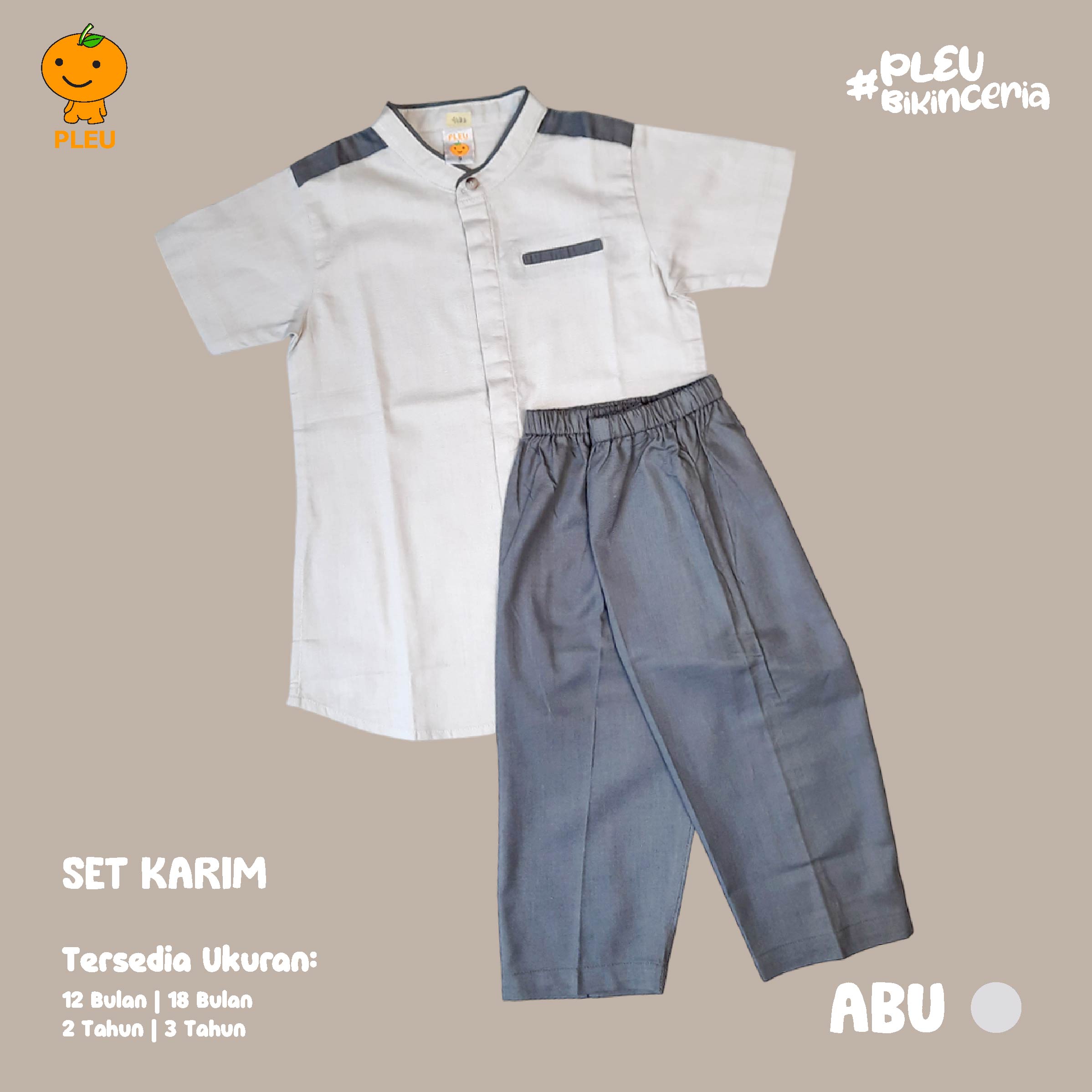 Set Karim merupakan setelan yang terdiri dari koko polos lengan pendek dengan detail bisban pada bagian saku dan pundak juga detail kancing yang clean. Tersedia dalam kombinasi warna abu dan hijau, set ini dirancang untuk memberikan kenyamanan dan penampilan menarik. Terbuat dari bahan berkualitas yang telah bersertifikat SNI, Set Karim memastikan keamanan bagi kulit anak. Desainnya yang modern dan praktis membuat set ini sempurna untuk berbagai acara, baik formal maupun santai.