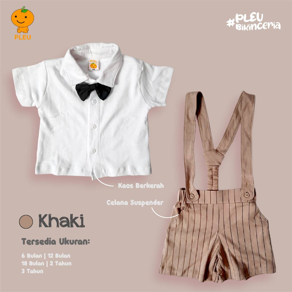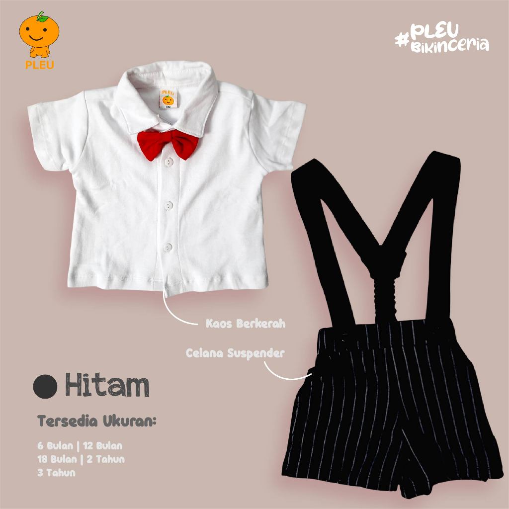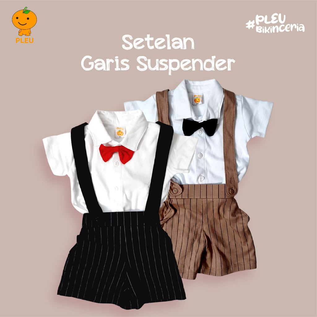 Setelan Garis Suspender merupakan setelan yang terdiri dari kaos berkerah dengan dasi serta suspender yang terpasang pada celana motif garis yang memberikan sentuhan formal namun tetap nyaman dipakai untuk setiap anak laki-laki. Berbahan lembut yang aman dan nyaman untuk kulit Si Kecil, setelan ini akan membuat si kecil terlihat stylish.