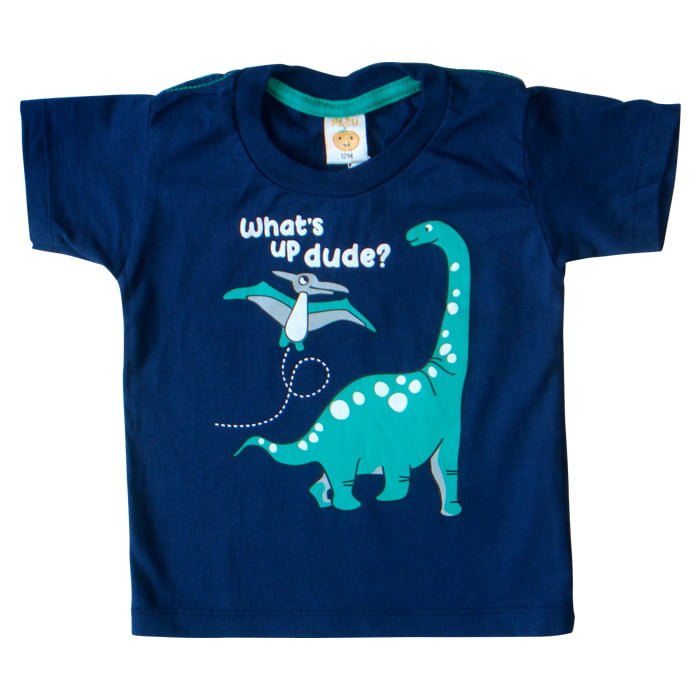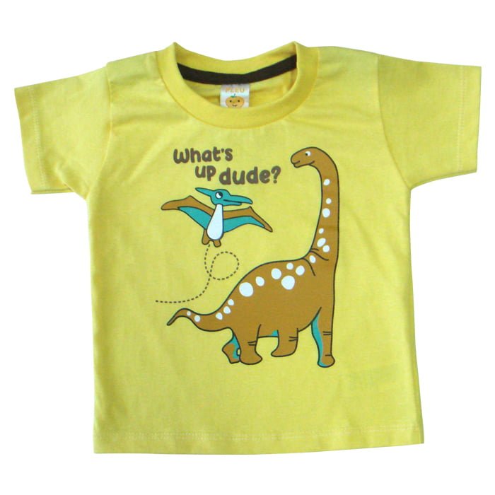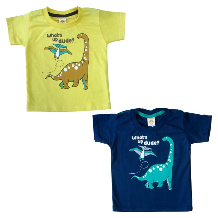 T-Shirt Whats Up Dude merupakan short sleeve t-shirt berbahan kain katun yang didesain comfy dalam round neckline dan detail printing “whats up dude” dinosaurus di bagian depan baju. Tersedia dalam 2 pilihan warna kuning dan navy, size 12 bulan, 18 bulan, 2 tahun, dan 3 tahun.